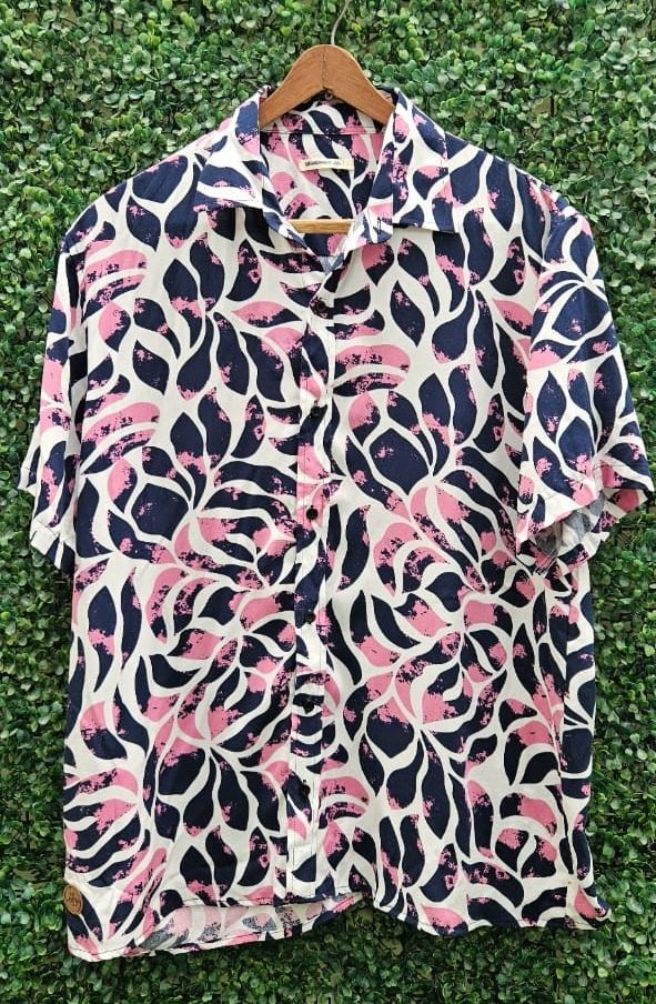 Camisa barranquina confeccionada con tela chalis, tela ligera, suave y versátil.