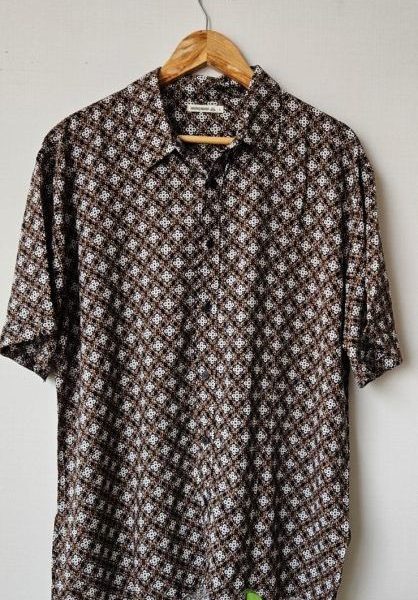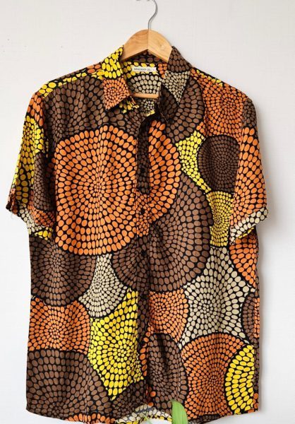 Camisa barranquina confeccionada con tela chalis, tela ligera, suave y versátil.