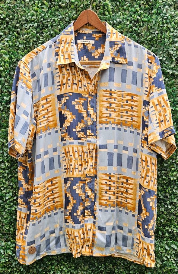 Camisa barranquina confeccionada con tela rayon, muy parecida a la de chalis, tela ligera, suave y versátil.
